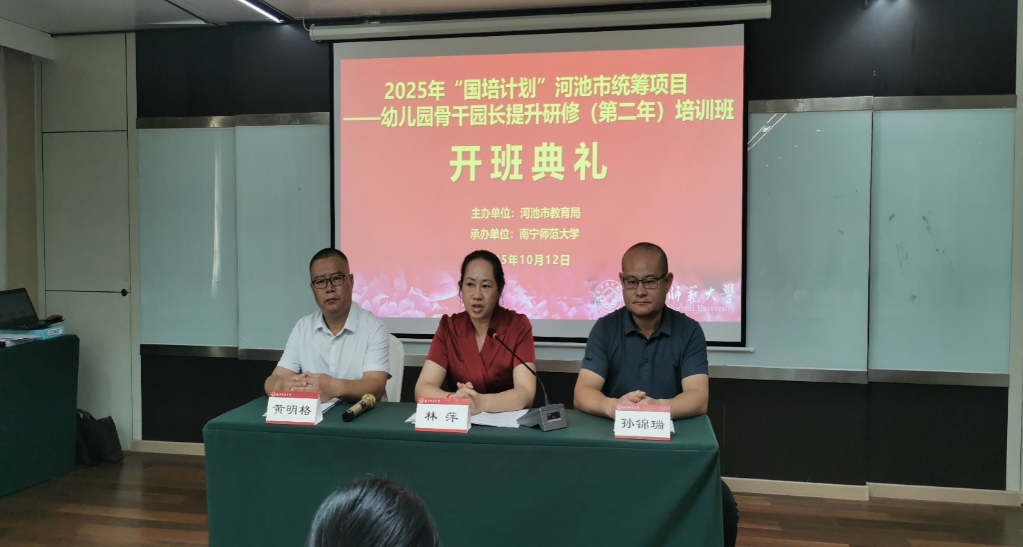 10月12日,由必威西汉姆联官网教育科学学院承办的2025年“国培计划”河池市统筹项目——幼儿园骨干园长提升研修(第二年)培训班,在南宁市顺利开班。此次培训班汇聚了来自河池市11县区的70名骨干正副园长,他们将在未来12天里,通过一系列精心设计的课程和活动,提升专业素养,为河池市学前教育事业注入新活力。