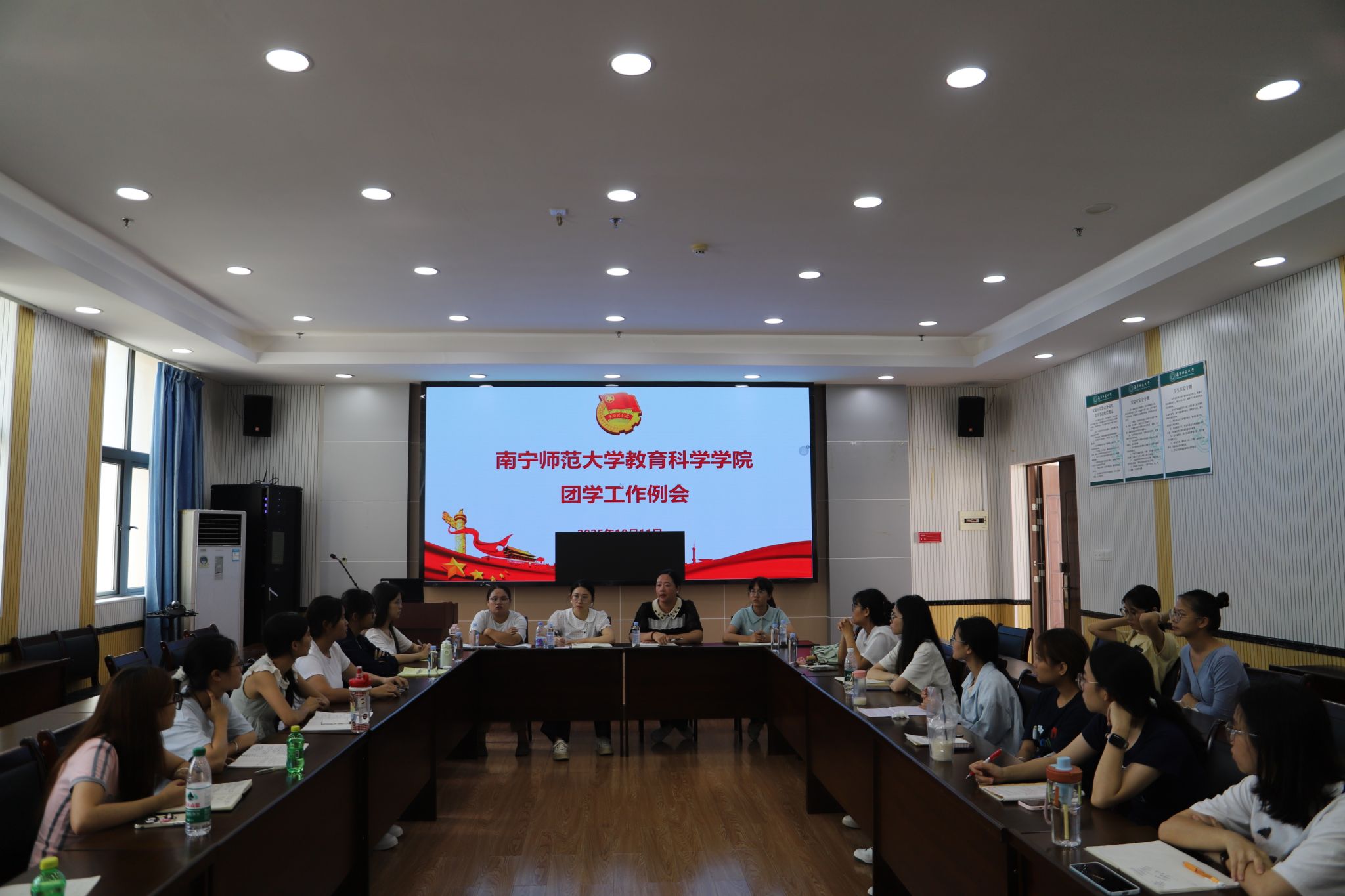 10月11日中午,教育科学学院在理综1003室开展2025年秋季学期团委学生会工作例会。此次会议旨在推进新学期团委学生会工作的有序开展,促进团学各部门之间的交流与合作。参加本次会议的有学院党委副书记谢珊、学工办全体老师以及团学各部门负责人。