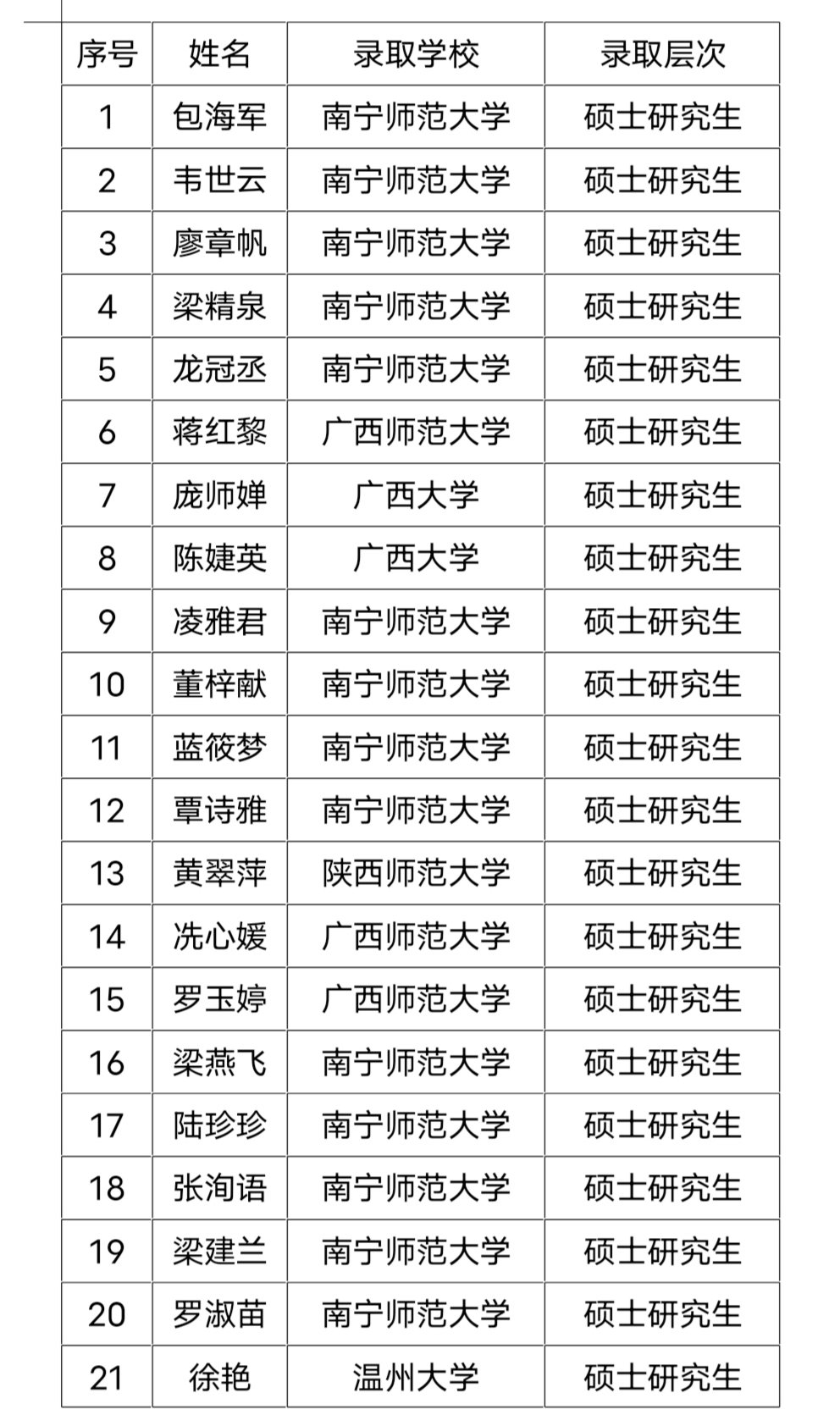 由于学院高度重视,老师精心指导,毕业生刻苦努力,我院2018届毕业生共有21人考研被录取,名单如下(排名不分先后):