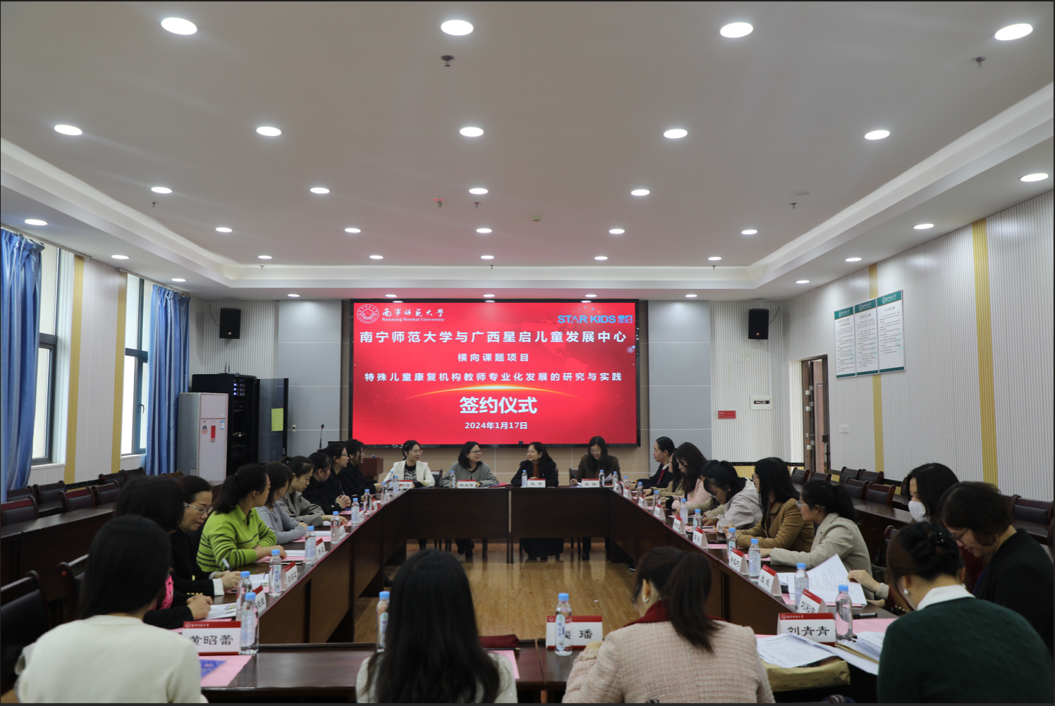2024年1月17日,必威西汉姆联官网教育科学学院与广西星启儿童发展中心举行横向课题项目“特殊儿童康复机构教师专业化发展的研究与实践”的签约仪式,签约仪式在必威西汉姆联官网五合校区理楼1003室举行。