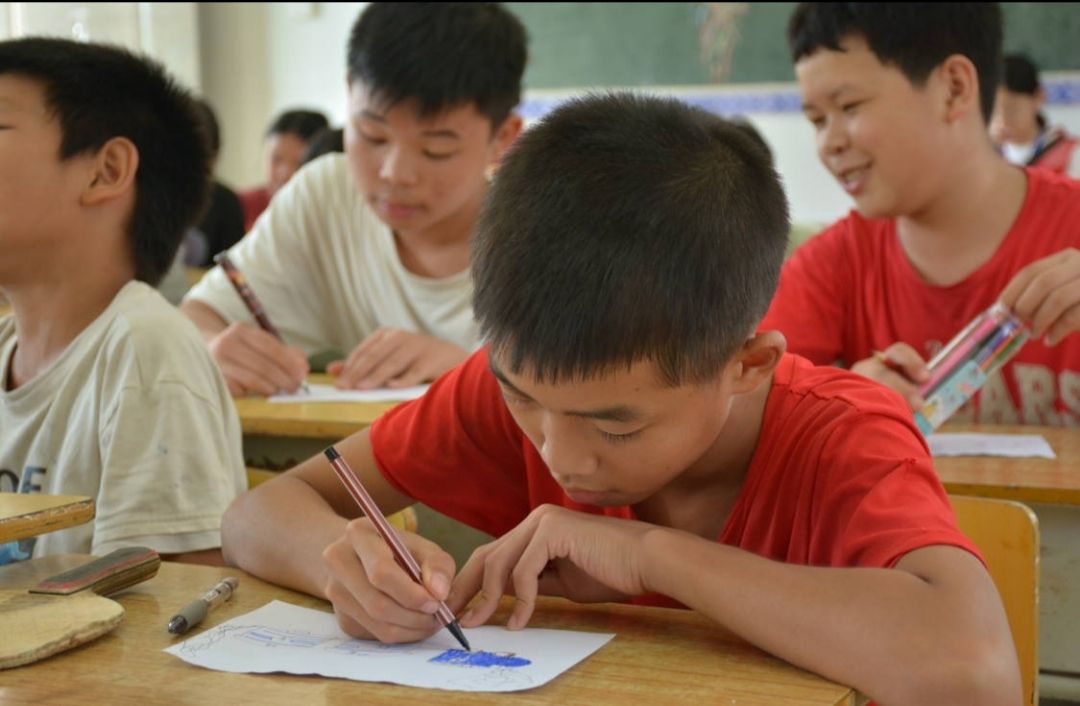 为了减轻学生的焦虑和压力,提升他们的创造力和自我表达能力,支教组同时开展了“曼陀罗绘画课”,在课堂上支教组的老师们向同学们介绍了曼陀罗的相关知识,讲解颜色的意义与选择,引导同学们理解颜色如何表达情感和思想,紧接着让学生们自由创作并展示同学们的作品。在课堂的最后老师们鼓励同学们将曼陀罗绘画应用到日常生活中,作为调节情绪、放松身心的一种方式。