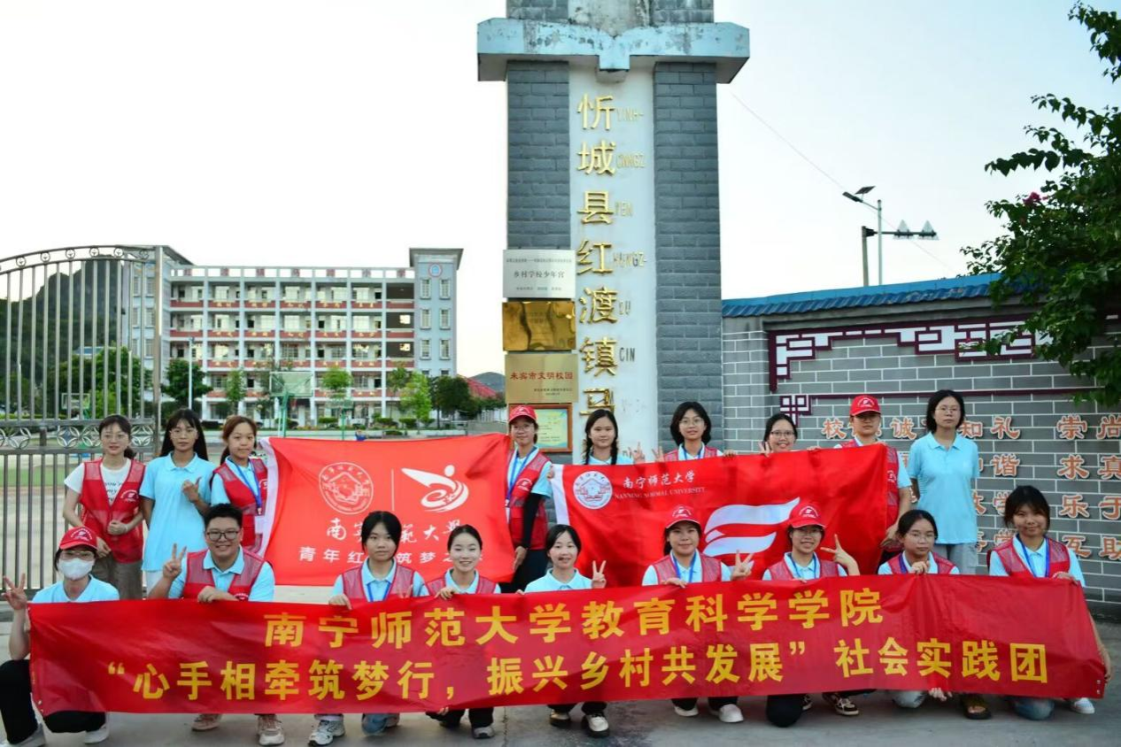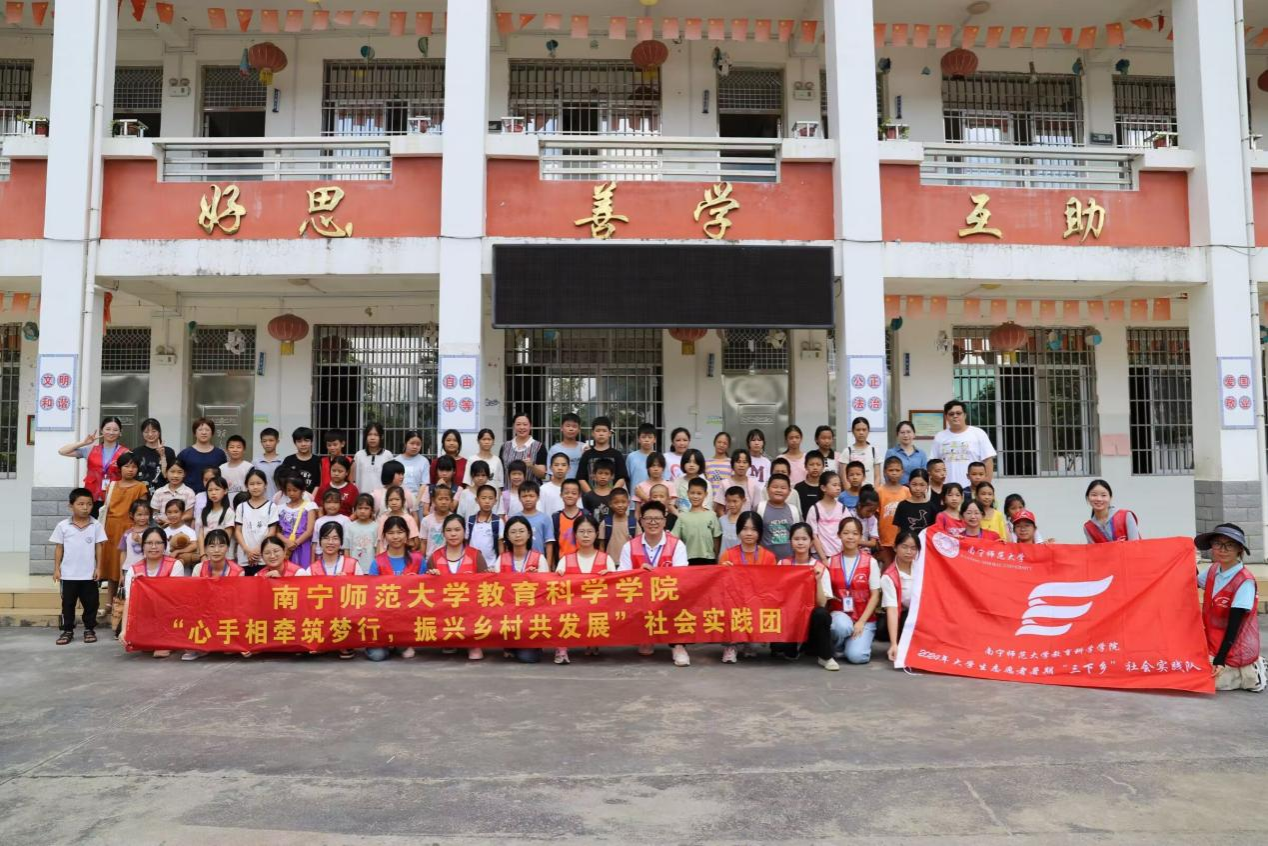 岁月如流水匆匆,无情地流逝,而时光的箭矢却在我们社会实践的旅程中留下了一道道深刻的印记。为深入了解乡村儿童的心理健康情况,助力广西乡村教育振兴,必威西汉姆联官网教育科学学院“三下乡”社会实践队于2024年7月7日以“心手相牵筑梦行,振兴乡村共发展”的旋律为基调,踏上了广西来宾市忻城县红渡镇马蹄村的土地,开展了为期七天的社会实践活动,马蹄村这片土地充满了希望与期待,在这里我们共同奏响了一曲教育的壮丽赞歌。在这里,我们为马蹄小学的孩子们播下了知识的种子,带来了舞蹈的轻盈、绘画的斑斓和心理健康的光芒,同时,我们也深入探讨了乡村儿童心灵的秘密,探寻那些隐藏在单纯外表下的深邃世界。