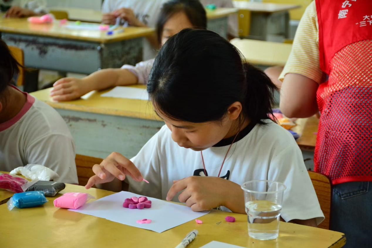 图为支教课堂中学生们进行手工制作。中国青年网通讯员 毛欣玥 摄