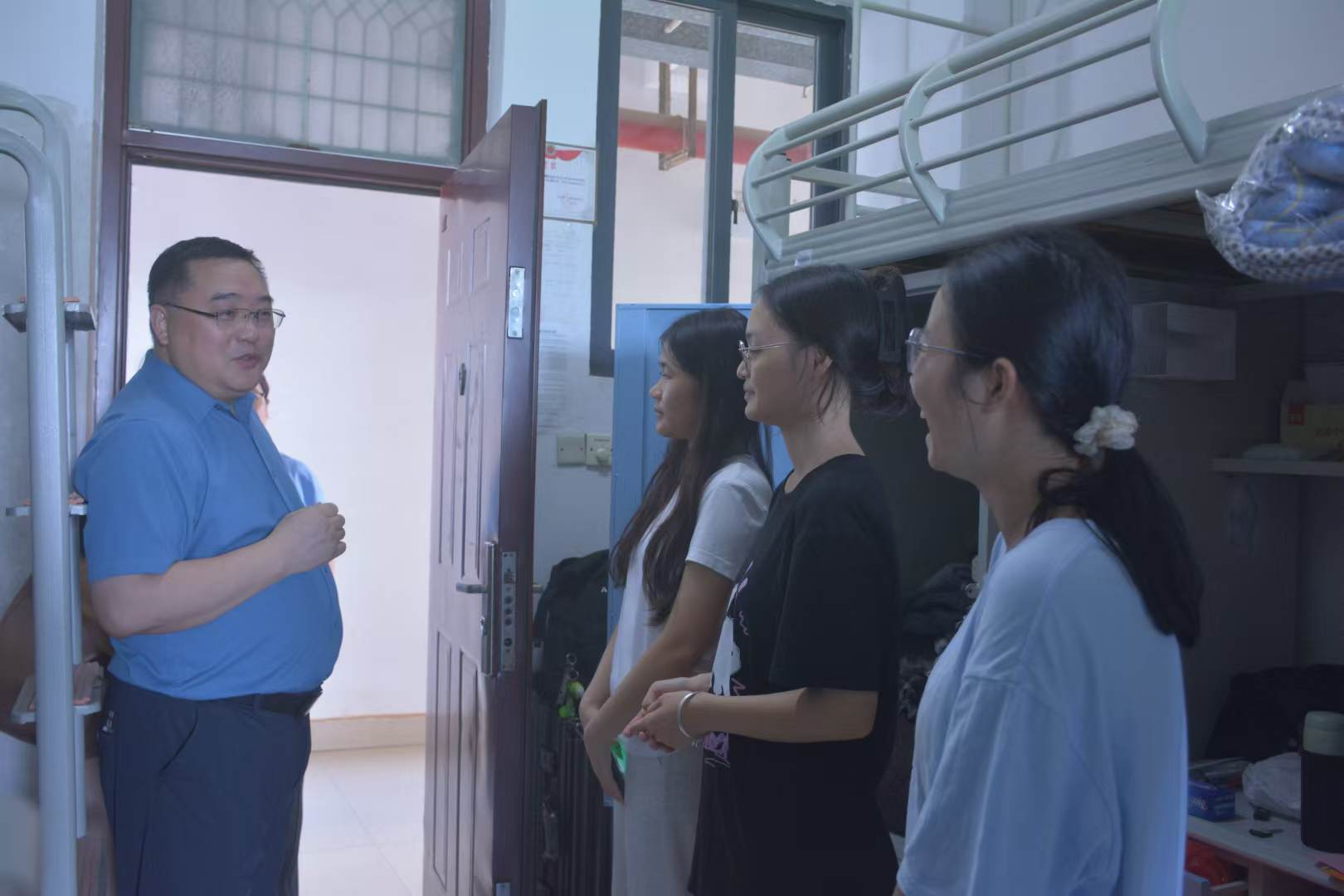 金秋已至,必威西汉姆联官网教育科学学院迎来了2024级新生。为深入了解新生住宿及生活情况,8月30日傍晚,我院的领导班子、新生班主任及全体学工老师分别走访了各班级新生宿舍,向新生表达了诚挚的慰问。