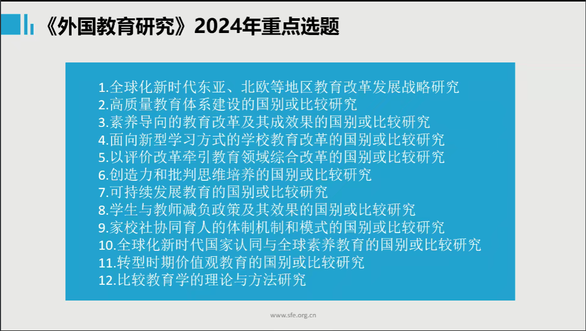 为进一步提升师生的学术论文撰写能力和科研水平,9月24日晚,由教育科学学院主办、广西教育现代化质量监测研究中心承办的百川育英大讲堂第99期讲座顺利举行。本次讲座邀请了东北师范大学《外国教育研究》胡义副编审,作题为“基于《外国教育研究》浅谈教育学论文的撰写与投稿”的线上讲座,会议由教育科学学院副院长徐延宇研究员主持。