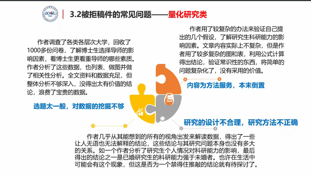 周玉清副编审详细介绍了《学位与研究生教育》期刊的基本情况,从专业角度分析了期刊文章的基本类型、常见的拒稿问题、期刊论文的写作要点以及投稿的注意事项。结合具体案例,周副编审就如何进行选题、寻找研究问题、开展论证分析以及撰写结语,从编辑视角提供了具体的意见建议;在讲座的互动环节,周副编审耐心解答了师生提出的问题,并鼓励硕士研究生积极踊跃投稿,展示自己的学术成果。