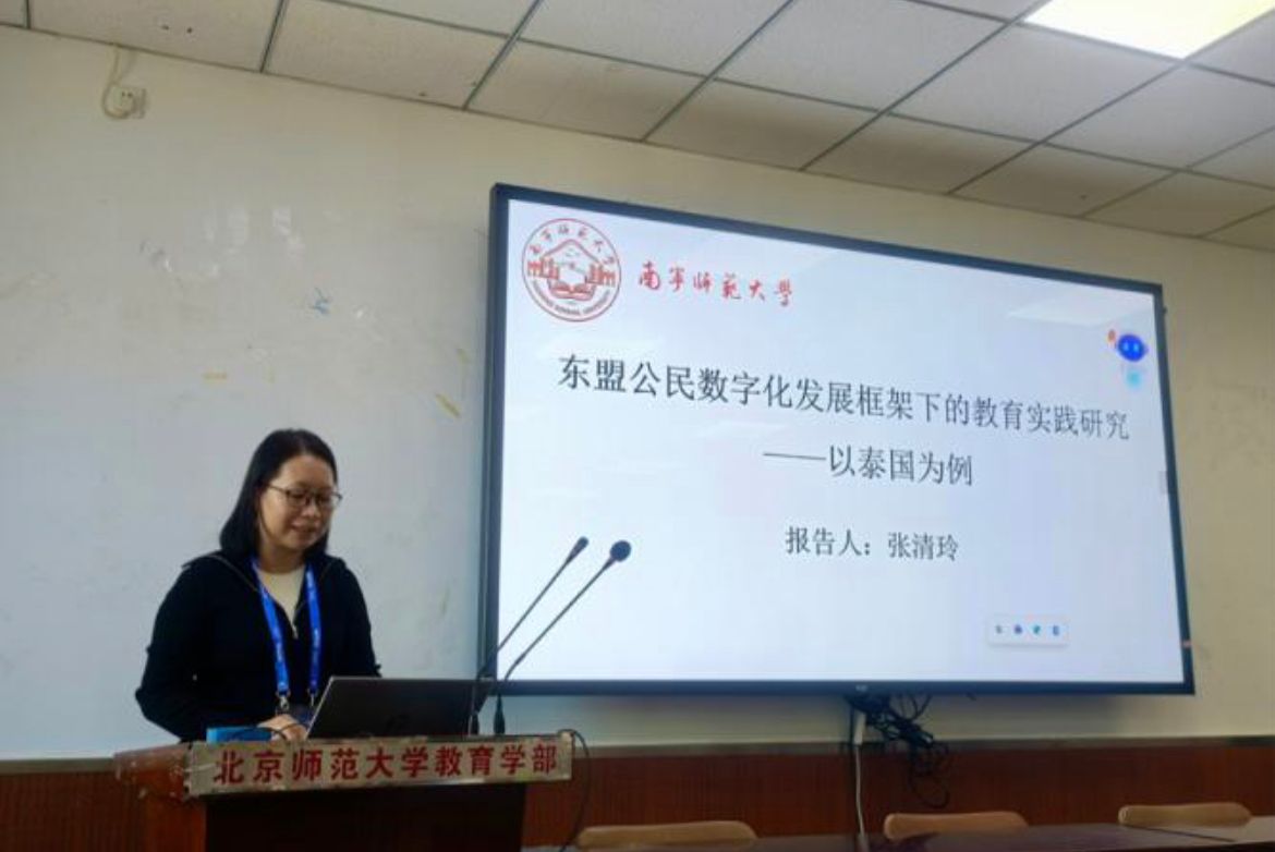 张清玲博士在“亚太地区的教育数字化转型”分论坛上担任了点评嘉宾,对小组发言进行了一一点评。此外,张清玲博士还在分论坛上以“东盟公民数字化发展框架下的教育实践研究——以泰国为例”为题作报告。报告中,张清玲博士基于东盟公民数字化发展框架深入剖析了泰国在教育数字化转型进程中的三大核心领域:数字接入的普及、数字素养的提升以及数字参与的深化,不仅展示了泰国在这些方面所取得的积极进展,还深刻揭示了当前面临的主要问题与挑战。