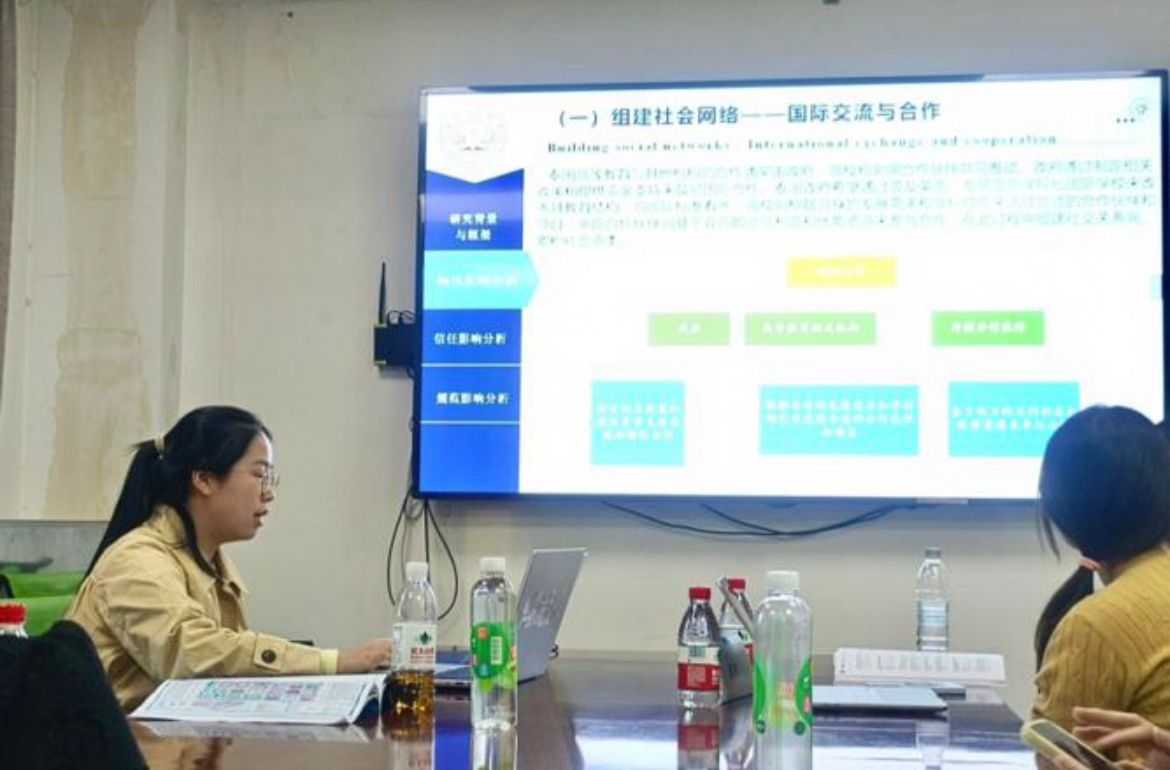 与此同时,2023 级比较教育专业硕士生陈越也进行了题为“社会资本视角下泰国高等教育国际化:网络、信任、规范的影响研究”的主题汇报。她运用社会资本理论,从网络、信任和规范三个维度深入探讨了泰国高等教育国际化进程中社会资本的影响,为我国高等教育国际化提供了具有前瞻性和可操作性的思路与路径。