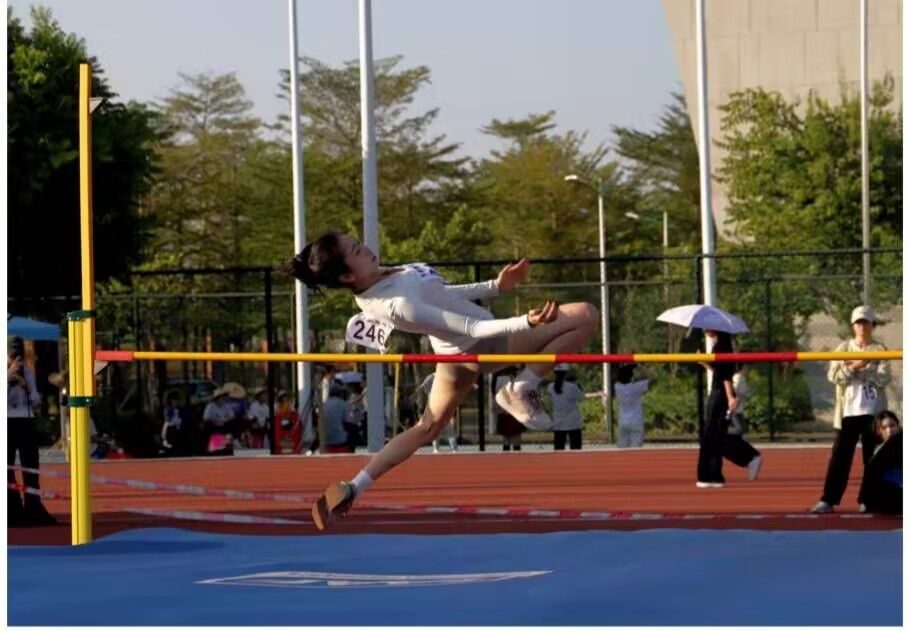 运动会开幕式上,各院级队伍,国旗手以及彩旗方阵陆续进场,锵铿有力的步伐,高亢嘹亮的口号,生动地展现了当代青年朝气与风采。开幕式结束,各比赛项目立即展开。田径赛场上,男女20*60混和接力赛,1500米长跑,短跑,立定跳远,女子高杆投绣球陆续开展。赛场上,运动员们或矫健如飞,或稳健如山,在彩旗飘扬,人声鼎沸 ,展现出了“永不言败,飞跃自我”的惊人风采。百米赛道上,运动员们如离弦之箭,瞬间爆发出惊人的速度与力量,那是对"速度决定成败"最生动的诠释;跳远沙坑旁,健儿们以优美的姿态划破空气,留下一道道绚丽的弧线,那是对"超越自我,挑战极限"的最好证明 。