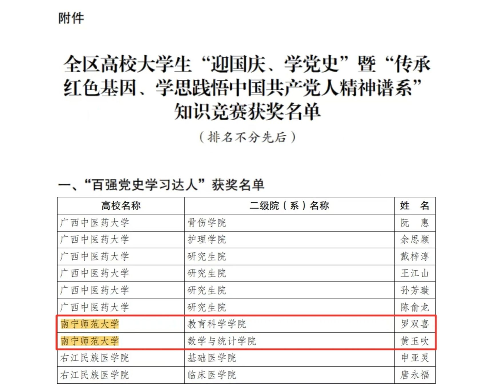 近日,在由自治区党委党史研究室与自治区教育厅携手举办的全区高校大学生“迎国庆、学党史”暨“传承红色基因、学思践悟中国共产党人精神谱系”知识竞赛活动中,我院学子展现出了非凡的党史学习成果与深厚的精神素养。