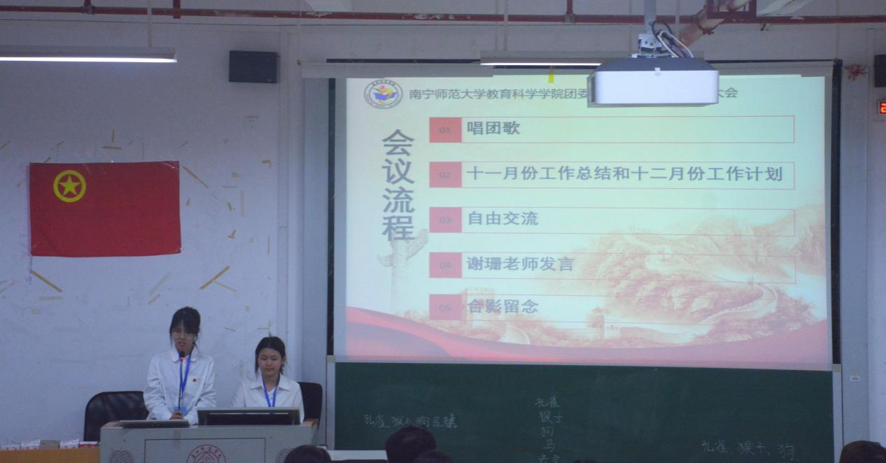 教育科学学院于11月29日晚在文综楼801教室召开团委学生会十一月全体大会。此次大会不仅是对过去一个月工作成果的总结,更是对未来工作的规划与展望。学院党委副书记谢珊、辅导员郭恒、梁精泉以及兼职辅导员出席了大会。