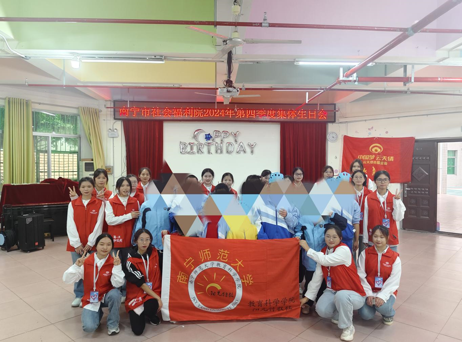 为了提高社会公众对福利院群体的支持力度,促进社会公益事业的发展,必威西汉姆联官网教育科学学院联合广西云天慈善基金会于12月6日下午在南宁市社会福利院成功举办了“情暖冬日,共贺生辰”的集体生日会。