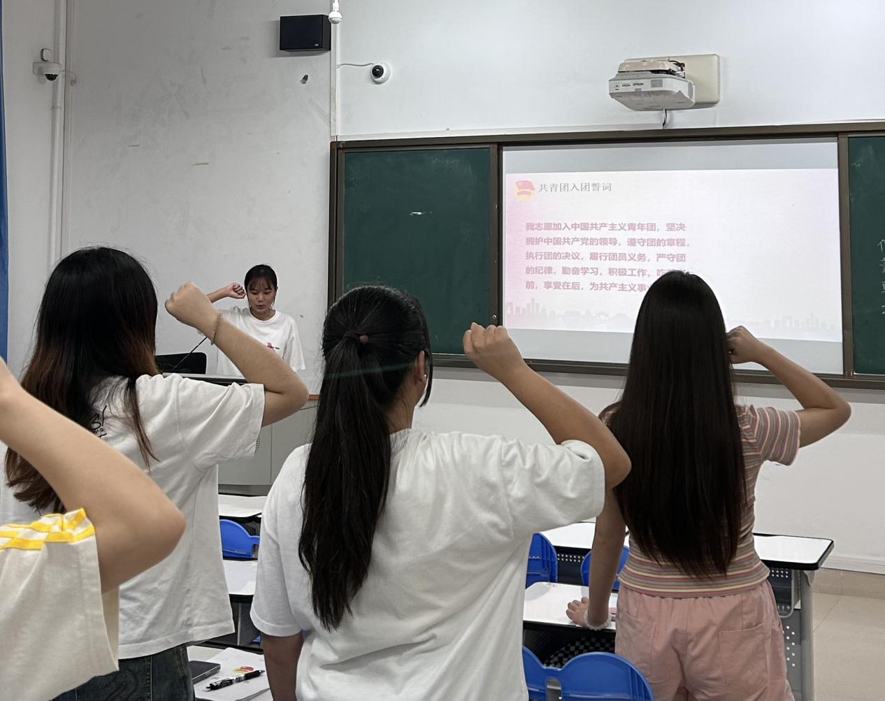 接着,团委组织部带领全体新团员面向团旗庄严宣誓,表达了新团员们对共青团组织的无限忠诚和对共产主义事业的坚定信念。新团员们整齐肃立,右拳紧握,声音洪亮地跟读入团誓词。