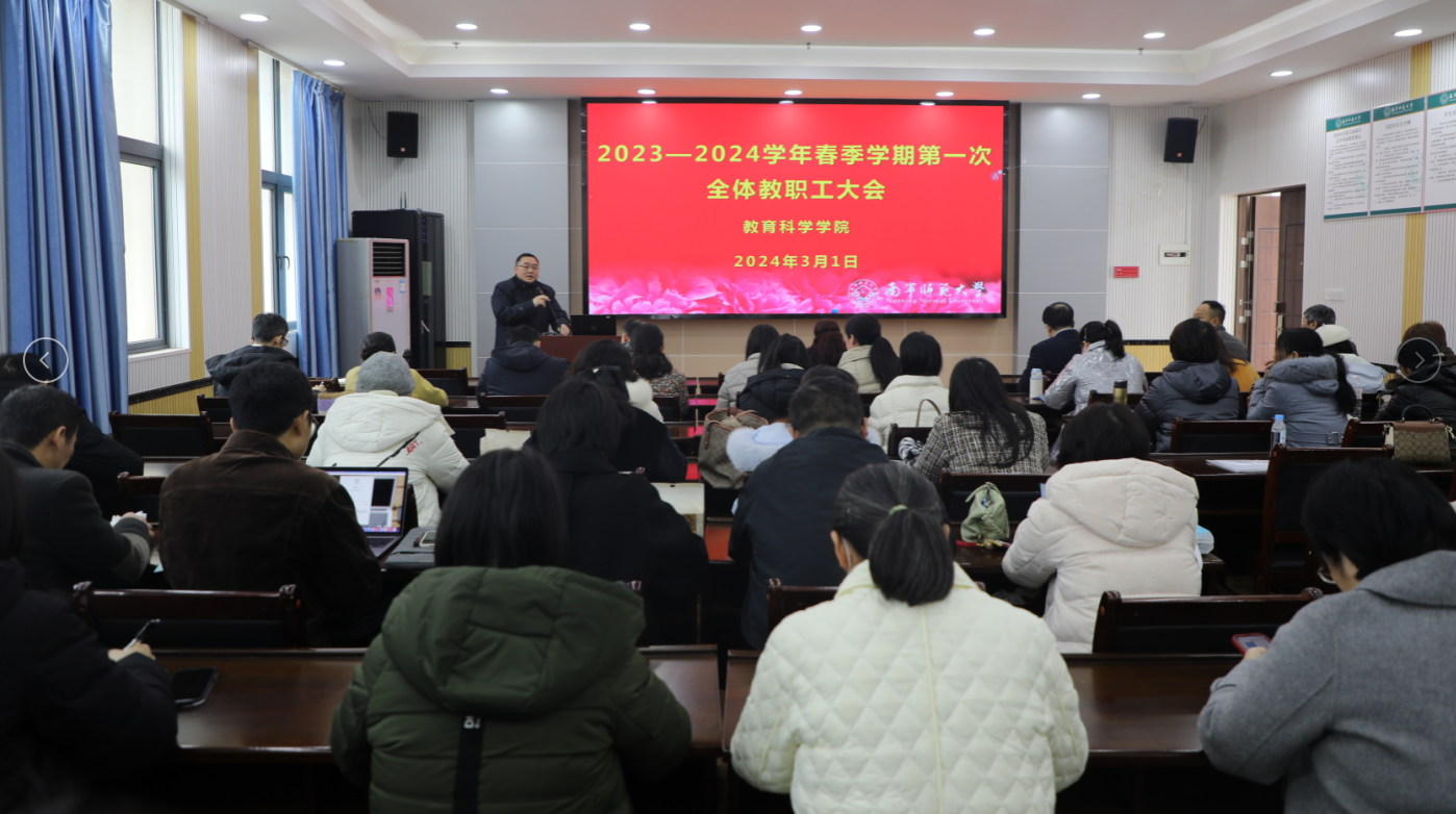 为顺利推进新学期各项工作的开展,教育科学学院于3月1日上午在五合校区召开了新学期全体教职工大会。会议由教育科学学院李强院长主持,全体班子成员和全体教职工参加了会议。