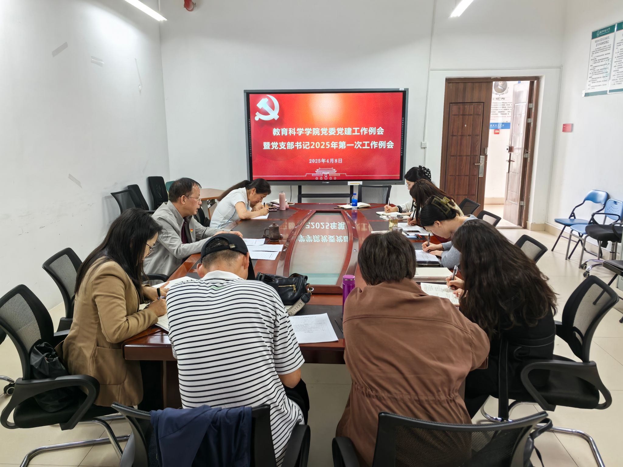 4月8日下午,教育科学学院党委在五合校区理楼1004-1会议室召开党建工作例会暨党支部书记2025年第一次工作例会。会议由学院党委书记余朝文主持,全体党支部书记参加会议。