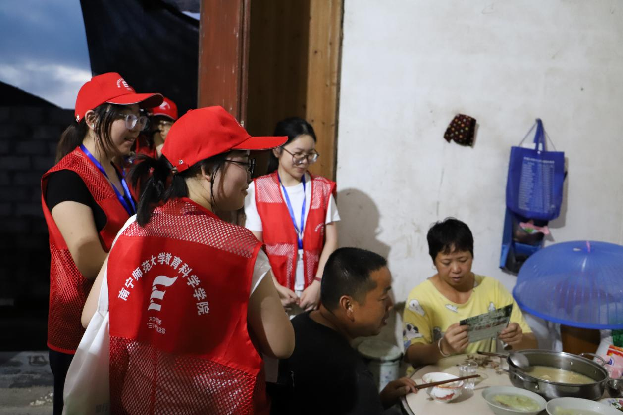 傍晚时分,实践团队在巫福星书记的带领下走进村落,逐户走访宣传此次“三下乡”活动内容,热情招募当地学生参与暑期夏令营活动。实践队员的真诚与热情感染着孩子们,孩子们纷纷在报名表上写下自己的名字,“情暖童心”的种子在乡土间悄然播撒。