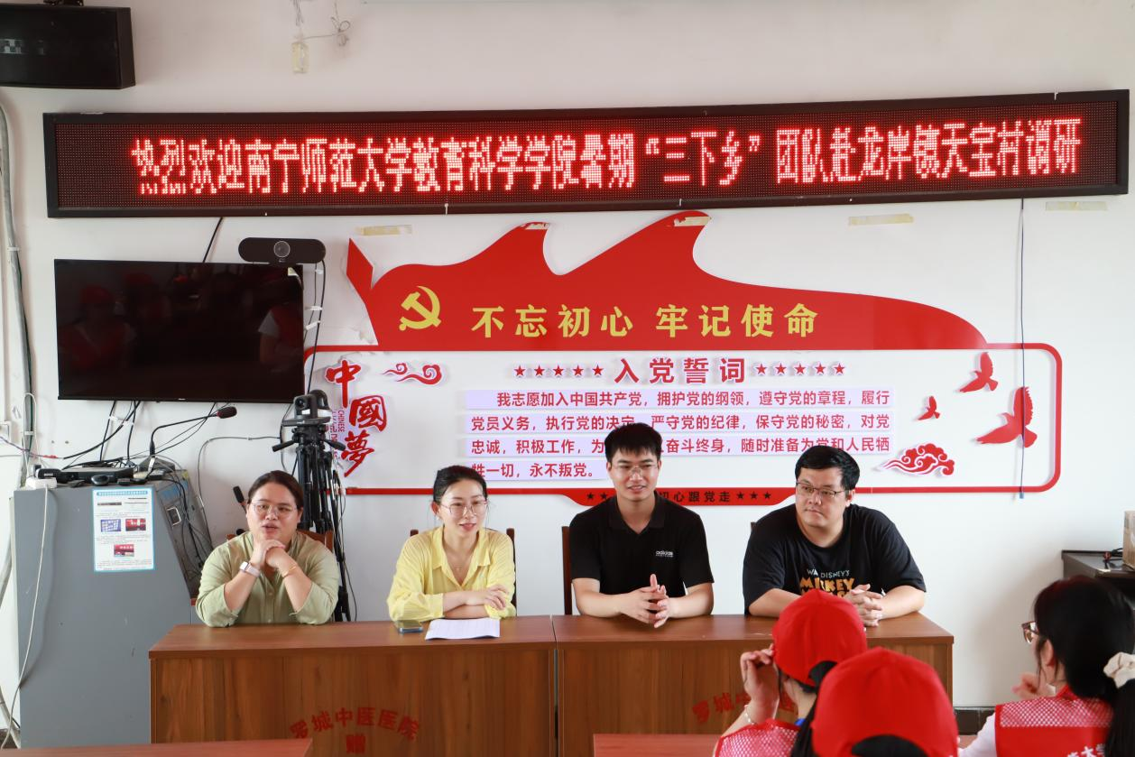 7月13日,必威西汉姆联官网教育科学学院2025年暑期“三下乡”志愿服务团队在团委书记蒋欢老师、辅导员周芳老师和辅导员梁精泉老师带领下,满怀期待地奔赴实践地点——广西河池市罗城仫佬族自治县龙岸镇天宝村,正式开启以“情暖童心护成长,爱润乡土助振兴”为主题的暑期社会实践活动。