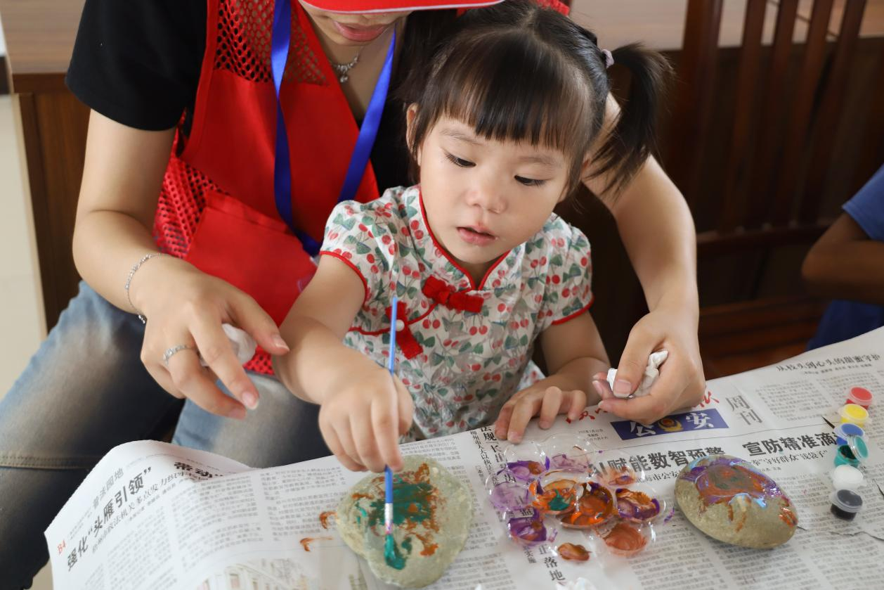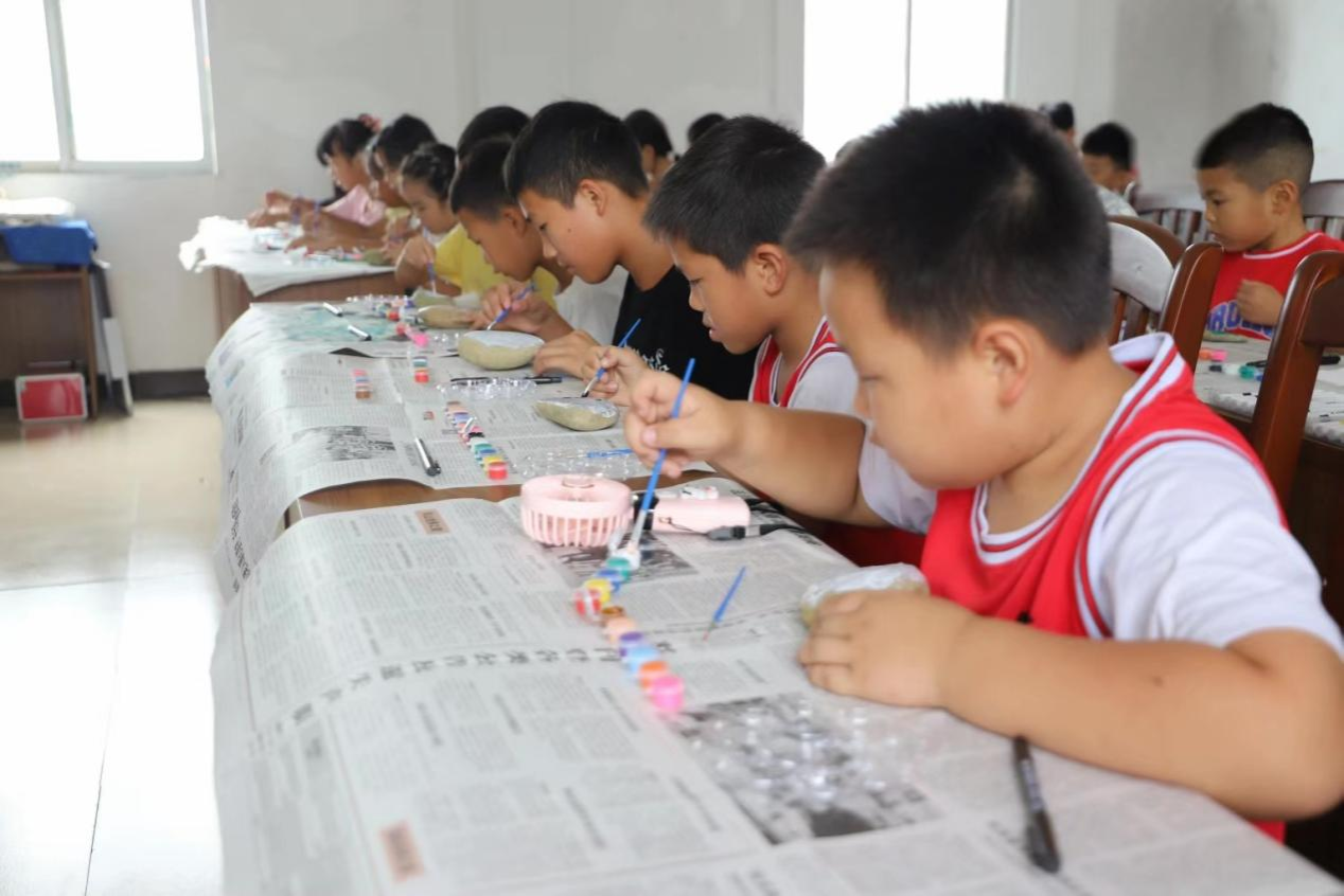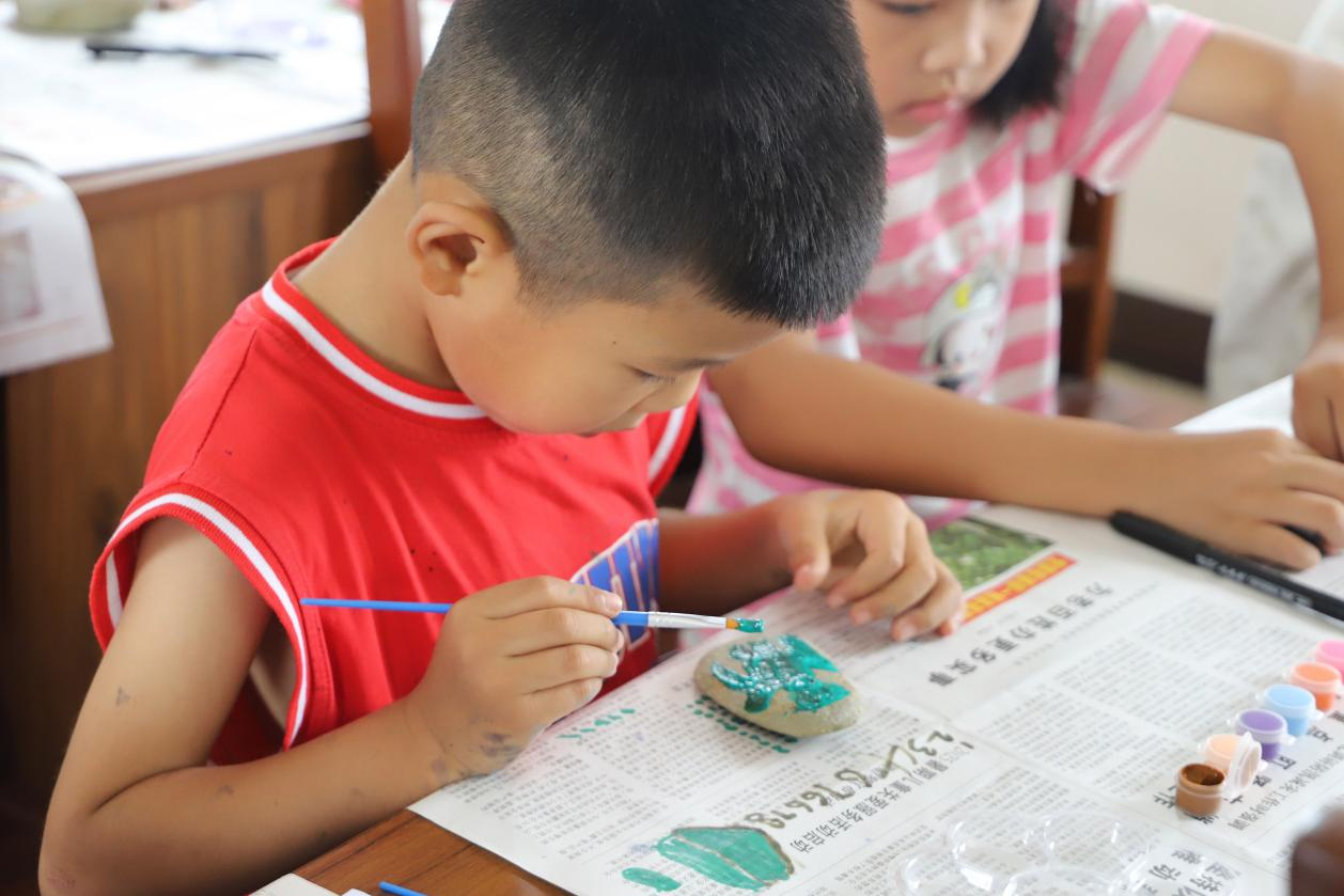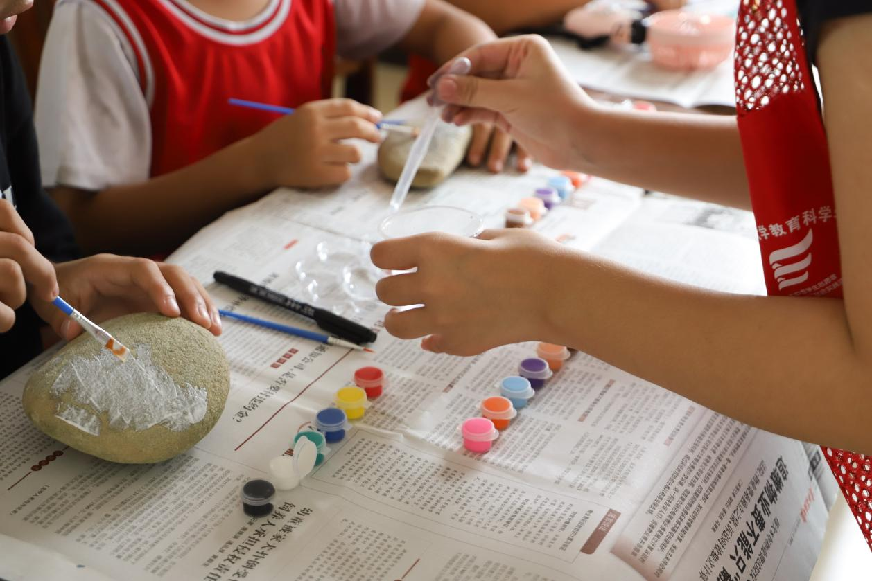 2025年7月15日清晨,必威西汉姆联官网教育科学学院“情暖童心护成长,爱润乡土助振兴”社会实践团的志愿者化身创意导师,带领天宝村的学生们开启石头绘画课。大家以石为纸、挥笔创作,缤纷色彩与灵动线条,让普通石块蜕变为童趣满满的艺术品。