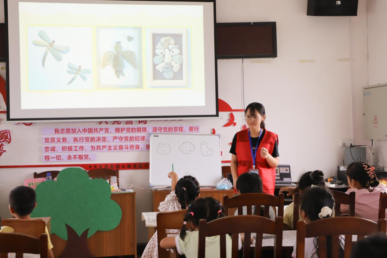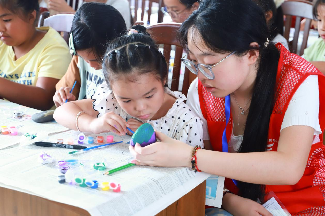 此次石头绘画课,让同学们在亲近自然的同时感受艺术创作的乐趣,既锻炼了动手能力,也激发了创新思维。实践团志愿者的耐心引导,更让课堂充满温暖与鼓励,为同学们的童年时光增添了一抹绚丽的色彩。