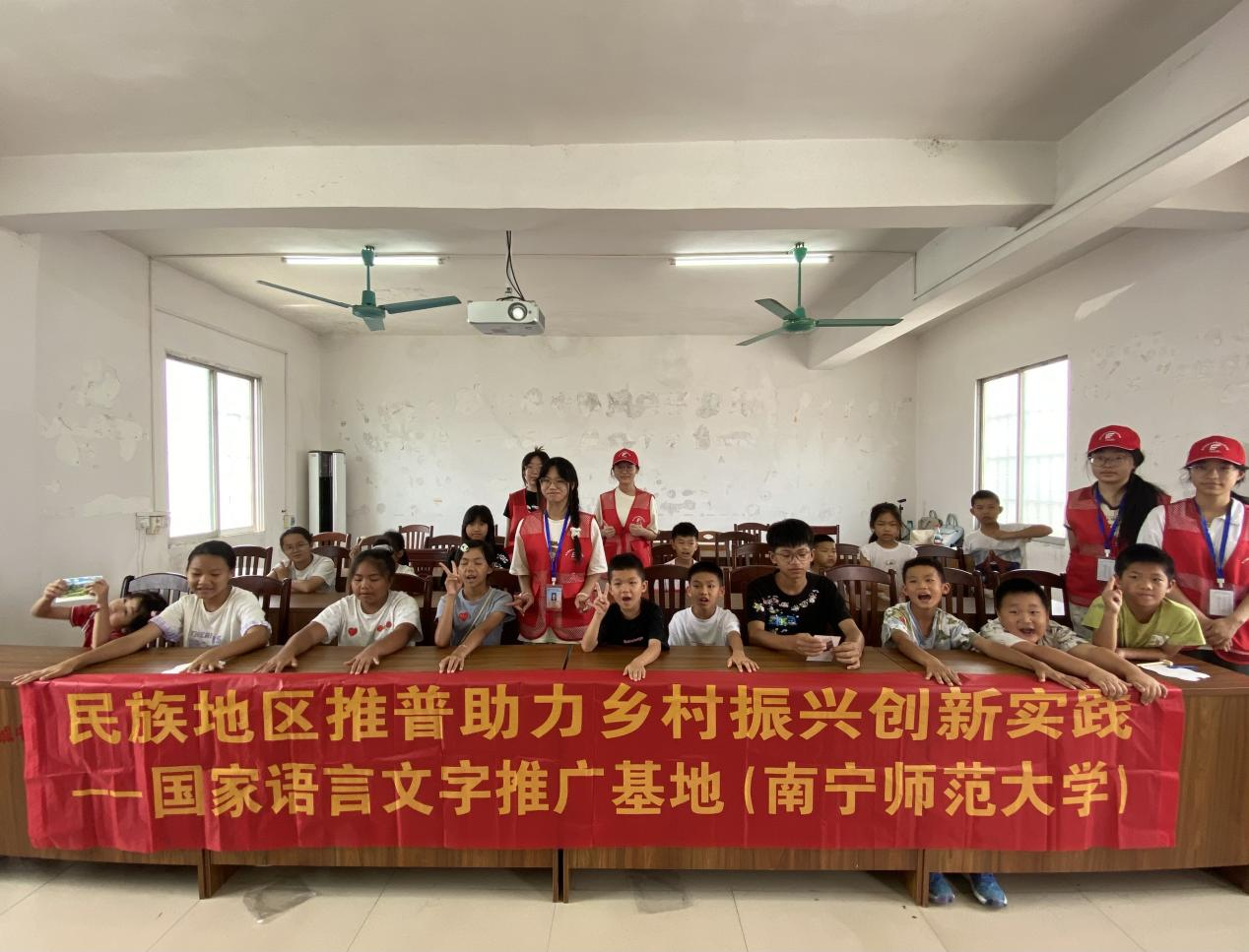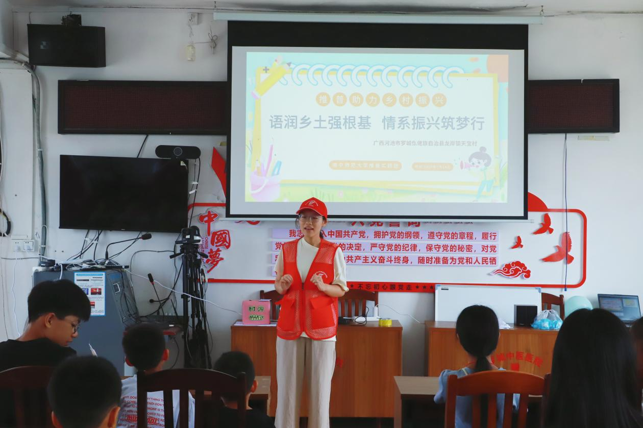 为深入贯彻落实习近平总书记在全国教育大会上的重要讲话和关于语言文字的重要指示批示精神,加大国家通用语言文字推广力度,近日,必威西汉姆联官网教育科学学院暑期实践团在河池市罗城仫佬族自治县龙岸镇天宝村开展了民族地区推普助力乡村振兴实践活动,此次实践活动内容丰富多样,涵盖了村民普通话情况调研、推普支教课程、多元化宣传推普等多个方面。