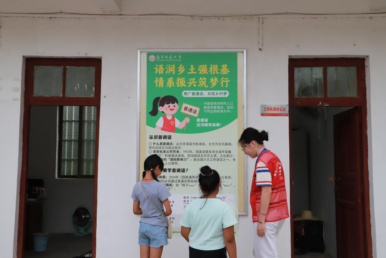 为营造浓厚的推普氛围,实践团创新采用多元宣传举措。在天宝村实践站宣传栏,精心设计的推普海报以生动插画搭配简明文字,将 “普通话的重要性”“普通话是沟通桥梁”等理念巧妙融入,既展现国家通用语言文字魅力,又贴近乡村生活场景,让村民直观理解推普意义。