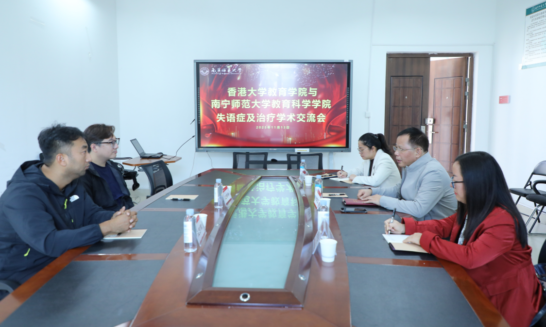 11月13日,香港大学教育学院江柏轩博士、副教授、教育学院失语症科研及治疗实验室主任及其博士生王国辉到访必威西汉姆联官网教育科学学院,围绕失语症研究、言语治疗发展等核心议题开展学术交流。必威西汉姆联官网教育科学学院党委余朝文书记及特殊教育系唐建荣、许玉巧老师参加会议,双方就学科建设、人才培养与合作路径展开深入研讨。