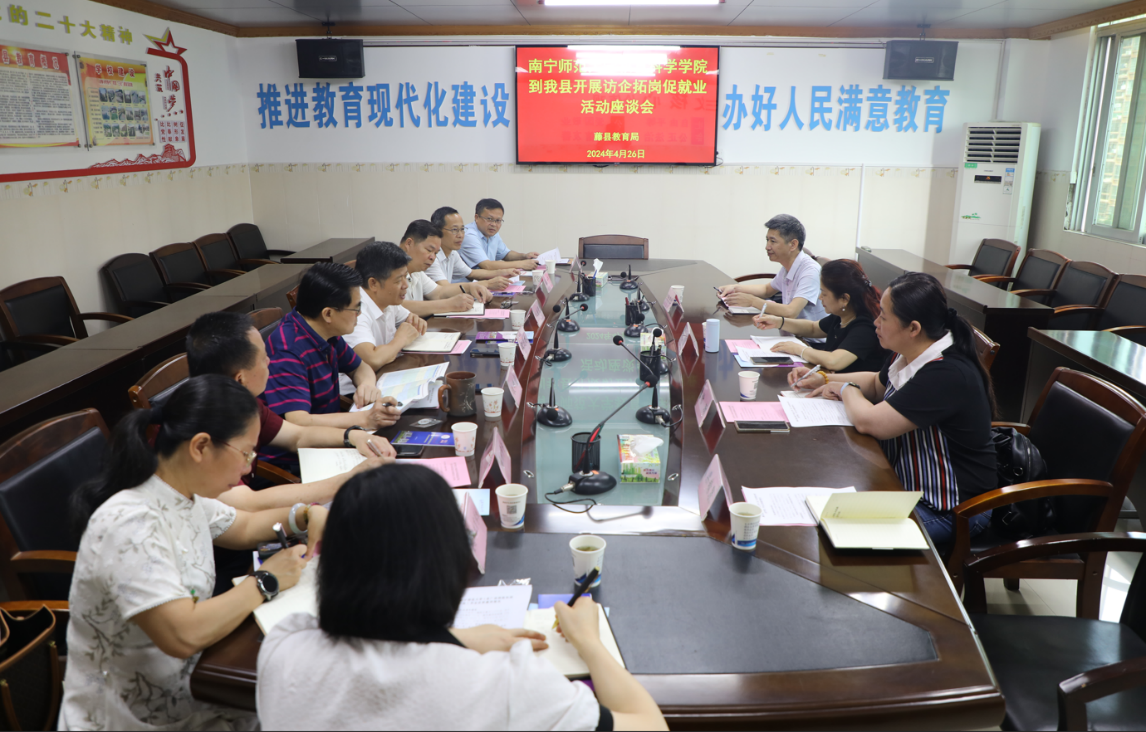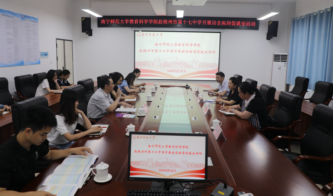 为进一步拓宽高校毕业生就业渠道,加强高校与中小学之间的紧密合作,4月26日,教育科学学院党委书记庞芳、副书记谢珊、教育学部办公室主任杨进红等一行4人,前往梧州市区、藤县两地开展访企拓岗促就业活动。