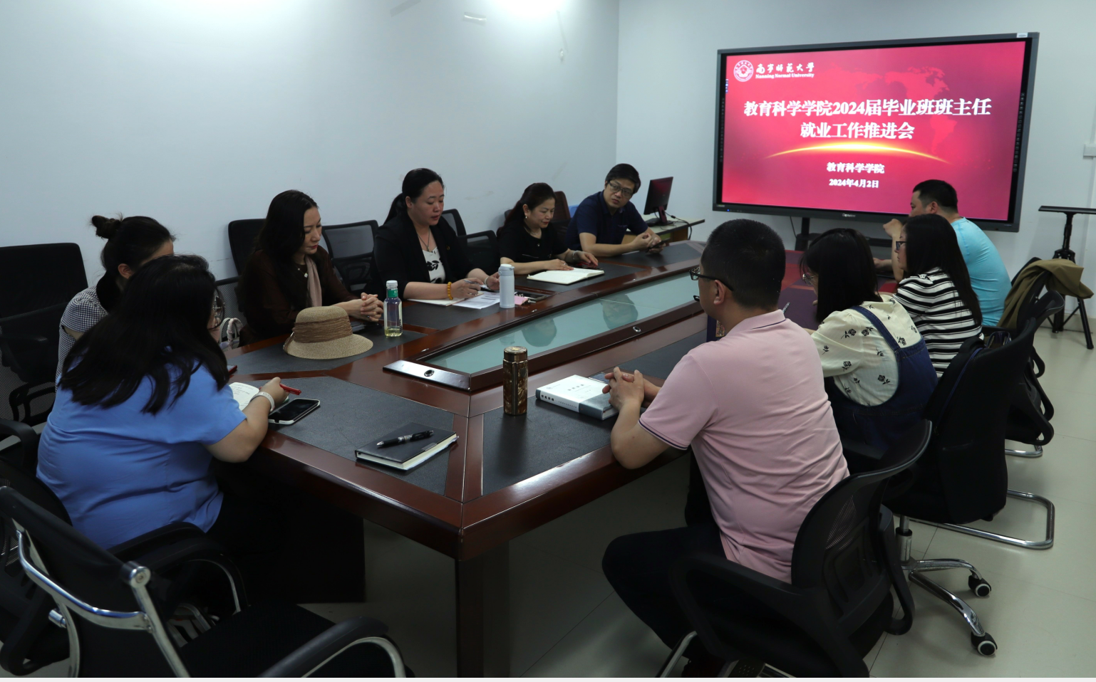 为进一步提升2024届毕业生的就业质量,促进毕业生充分就业,4月2日,教育科学学院召开2024届毕业班班主任就业工作推进会,学院党委书记庞芳、副书记谢珊、负责学院就业工作的辅导员及全体毕业班班主任出席了此次会议。会议由学院党委书记庞芳主持。