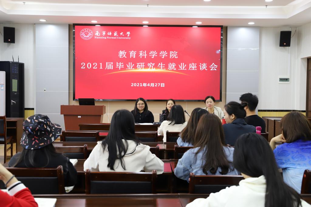 为了更好地了解和促进毕业生的就业创业工作,教育科学学院于4月27日在五合理楼1003室举办2021届毕业研究生就业座谈会。学院党委庞芳书记、谢珊副书记、辅导员周芳老师出席本次座谈会,教育科学学院2021届全体毕业研究生参与了本次座谈会。座谈会由周芳老师主持。