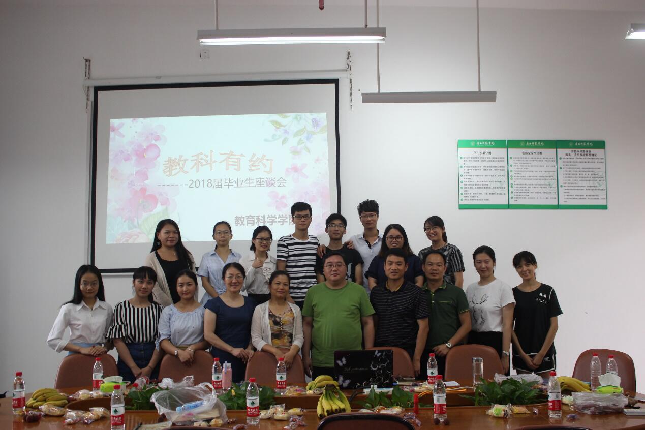 6月22日,教育科学学院在五合校区理综楼1003会议室举行了以“教科有约”为主题的2018届毕业生座谈会。参加此次会议的有庞芳书记、李强院长,敖方言副书记、曾玲娟副院长、分团委黄丹丹书记,院办处罗主任以及各班毕业生代表,座谈会由敖方言副书记主持。