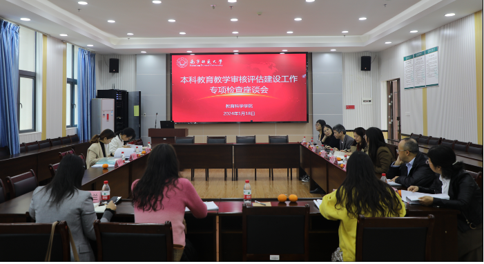 为确保学校新一轮本科教育教学审核评估工作有序推进,1月18日上午,教务处副处长张淑云带领教育评价与教师发展中心盖顺老师到教育科学学院进行专项检查并开展座谈会,我院党委书记庞芳、副院长张瑞、教育学部办公室主任杨进红、公共教学部主任张勇、各系正副系主任和教学秘书参加专项检查的座谈会。